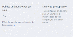 Las campañas de Facebook pueden iniciarse con un presupuesto modesto y los costes de los anuncios son bastante bajos. Según su propia web se pueden publicar anuncios desde una inversión de 5€.