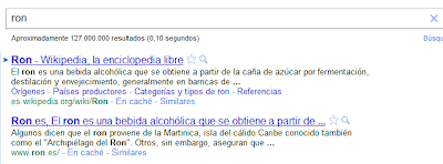 Resultados de búsqueda como los de la imagen en los que no aparecía publicidad hasta ahora, mostrarán pronto anuncios de Google AdWords de aquellas marcas de bebidas alcohólicas que decidan anunciarse en internet.