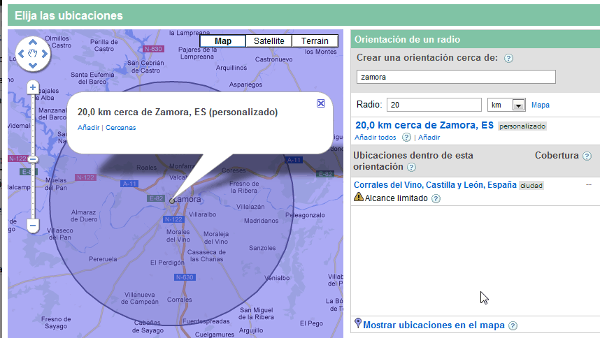 | Orientación en AdWords con área personalizada para Zamora |